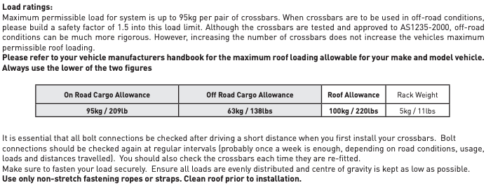 Includes 2 x cross bars with quick release legs. This system allows you to take off and refit your cross bars easily.